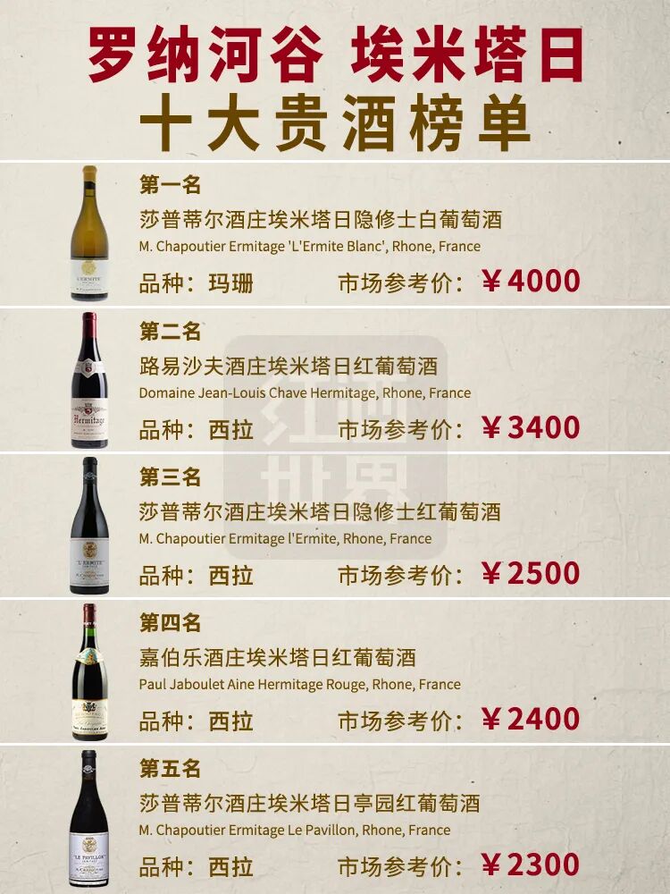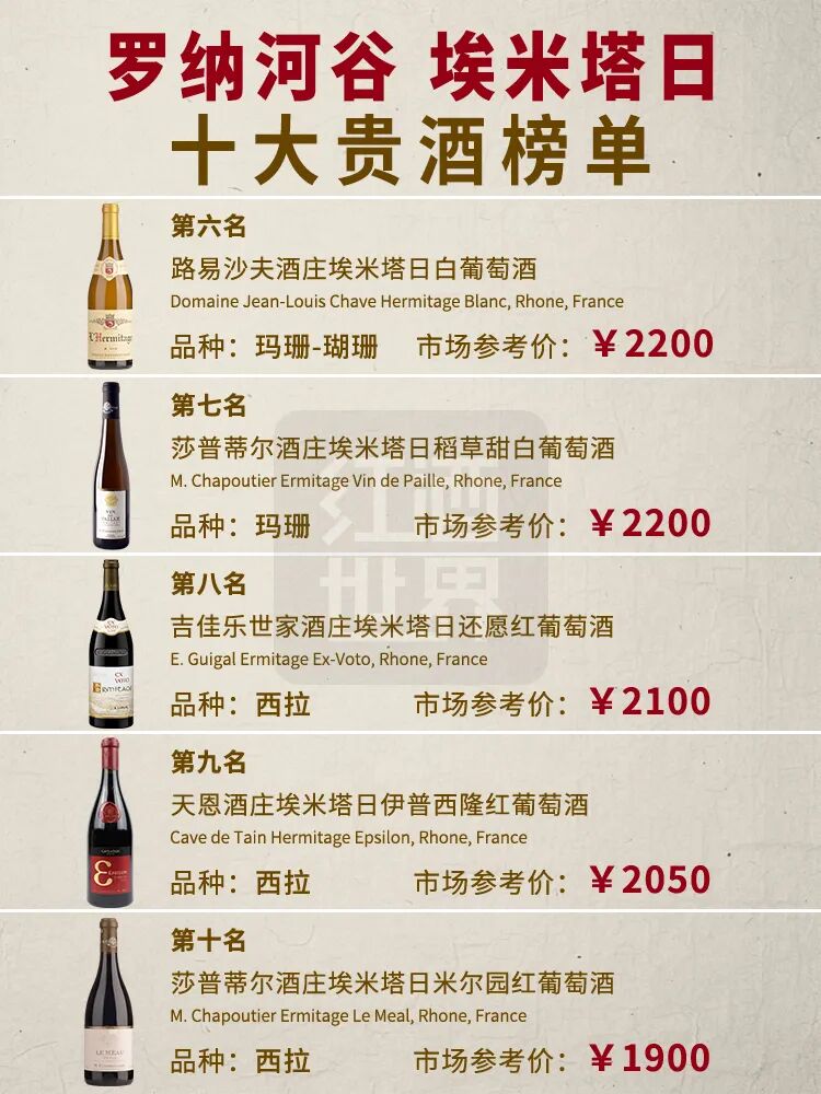 罗纳河谷埃米塔日十大贵酒榜单