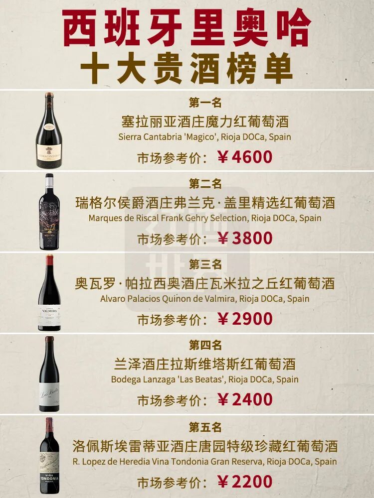 西班牙里奥哈十大贵酒榜单